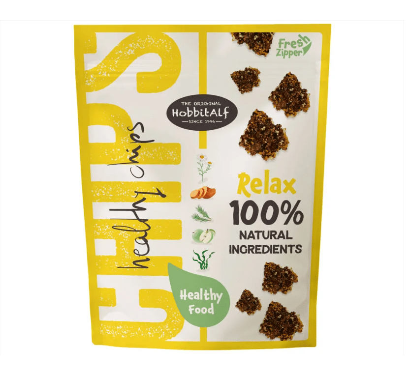 Healthy Chips Relax di HOBBITALF® è un alimento complementare pensato per aiutare il cane a mantenere calma e serenità. Grazie alla presenza di erbe come melissa e camomilla, unite a ingredienti nutrienti, questo snack contribuisce a ridurre ansia e agitazione, favorendo una sensazione di benessere.