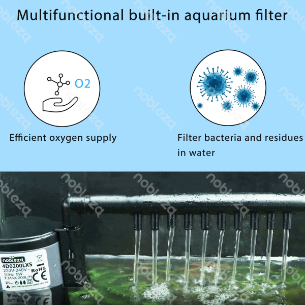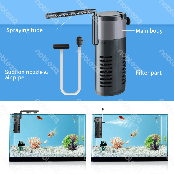 Pompa Filtro con 3 funzioni: ossigenazione, circolazione dell’acqua e filtrazione. Il motore silenzioso con forte piastra di aspirazione alla parete del serbatoio riduce le vibrazioni e il rumore, funziona in modo stabile e silenzioso.